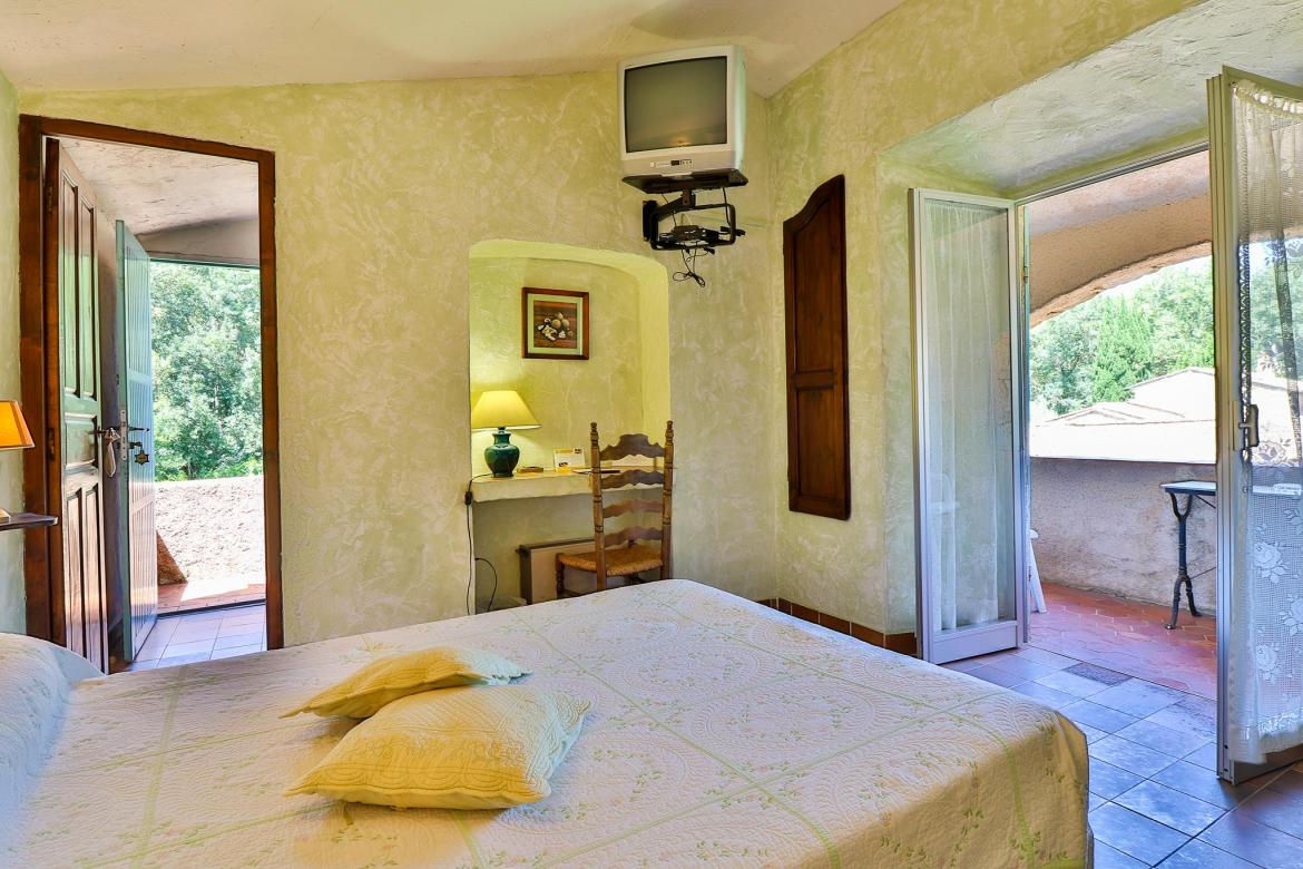 3 star Hotel La Pierrerie Grimaud offers 8 quiet and spacious double rooms. You may choose your preference of a 140cm, 160cm bed or two twin beds of 90cm each. It is possible to add an extra bed upon request. Four of these double rooms are decorated with Provençal coating. Others have a lovely patina with lime. All double rooms are equipped with a beautiful terrace, except for two rooms that have a balcony overlooking the hotel. (on voit l'hotel meme de le balcone ? Ou on voit le jardin ? Si c'est le jardin, on dit overlooing the garden)
